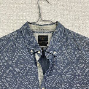 Quicksilver Modern Fit Men's L Light Blue Doodle Button Up Short Sleeve Shirt