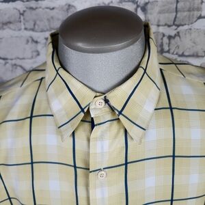 Quicksilver Plaid Button Front Shirt Short Sleeve Yellow Navy White Size XL