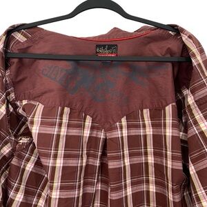 Quicksilver Western Shirt Mens XL Brown Plaid Button Down Pearl Snap Buttons Y2K