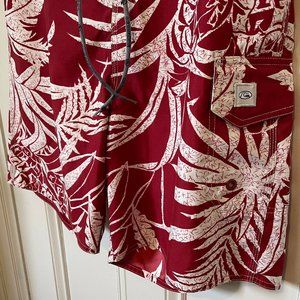 Like-new Quiksilver dark red & white men's board shorts