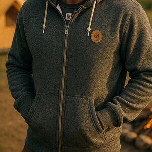 Quiksilver Keller Men's Hoodie, which is a full-zip hooded sweatshirt made from polyester fleece. It is designed with a regular fit for comfort and has a soft fleece lining. It also features a kangaroo pocket, a hood with a drawcord, and a full zip closure. The hoodie includes a Quiksilver logo patch on the arm. The Keller hoodie is designed to provide warmth and style.
