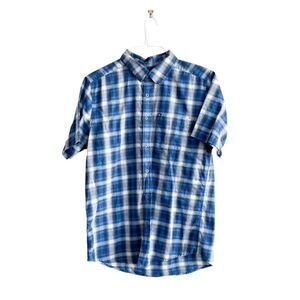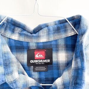 Quiksilver Mens Plaid Short Sleeve Cotton Slub Button Up Shirt Blue White Medium