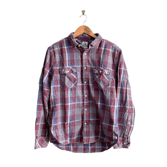 Quiksilver Modern Shirt Plaid Red Blue Button Up Men's M