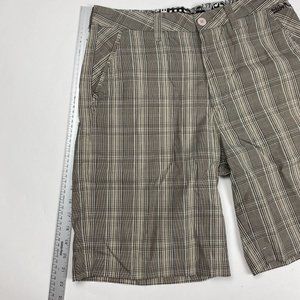 Quiksilver Shorts Mens 32 Cotton Brown Check Plaid Chino Golf Bermuda