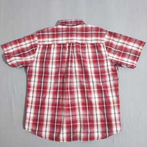 Quiksilver short sleeve button down summer shirt, lightweight in maroon colour with plaid pattern