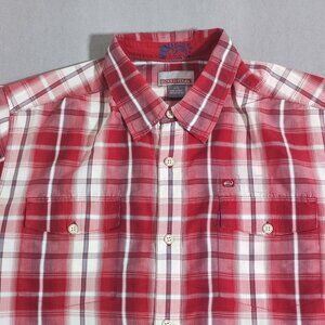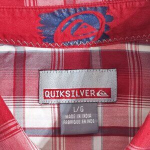 Quiksilver button down shirt men's sz L maroon colour plaid pattern lightweight