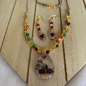 Those are a beautiful handmade jewelry made by a dreamer mother who mainly used quilling paper art as a craft technique. Each piece was carefully crafted rolling manually each dry rose petal strips with quilling paper tool, then the shape was given and patiently glued and then add some design details as a shiny, beads, foil etc.