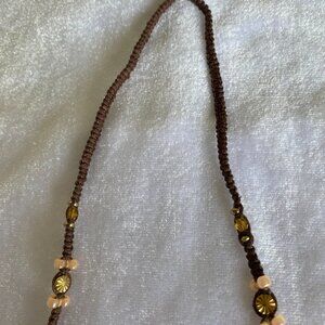 Those eyeglasses chain is handmade by macrame with a bright assorted colours and fresh design. it is, washable. Is suitable for sunglasses, reading glasses, prescription glasses,safety glasses. The glasses strap allows glasses to be comfortably hung on your chest, or rest on top of your head.Not only can they be a eyeglass chain, but also a fashion decorative necklace chain. The chain both ends have adjustable holder loops which can be slipped on and off easily to fix so that they can make it easy to attach to your glasses easily, will not fall outwith. Length 70-75 cms. Handmade with acrylic chaquiras/ polyester and thread and macrame.