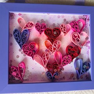 Those are our new Quilling love sensory painting These design will stimulate your senses through unique quilling paper designs, a delicate mixture of colors and brightness. This painting has sequins inside with which you can play and go through the quilling paper designs, generating a feeling of calm, serenity helping to calm stress.