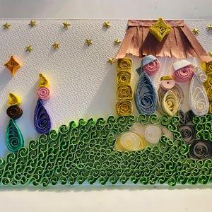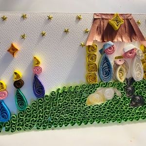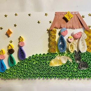 This is and lovely nativity scene card handmade with quilling paper art. In quilling love we offer gifts with unique and creative designs.