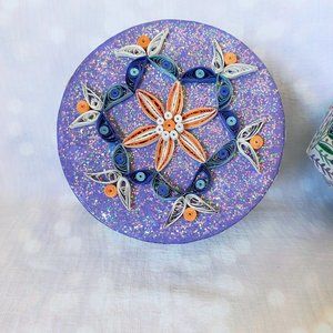 Those are a beatifull handmade box decorated with paper filligrene, pears, glitter and shiny which can be used for jewerly storage. It is a perfect gift for girls.