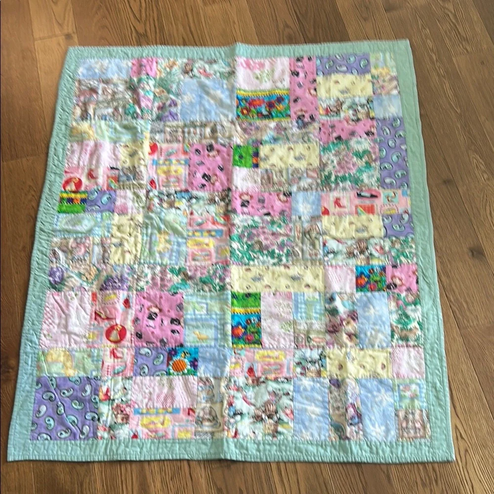 Vibrant patchwork quilt with a mix of colors and patterns. Perfect for adding a splash of color to any room.