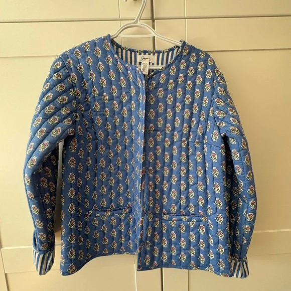 Chic quilted jacket with floral pattern with clasp closure, perfect for fall!