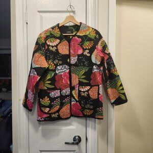 Boho Kantha Style Quilted Jacket Floral Patchwork Art Print Coat Size M