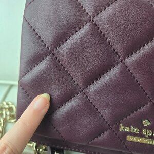 Plum coloured quilted leather Kate Spade crossbody bag. From the boutique, not an outlet bag. Champagne hardware. Used a couple times, in excellent condition. I can only barely see one mark which is shown in photos.