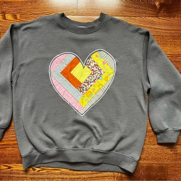 Handmade quilt block sweater made from vintage and second hand materials.