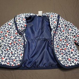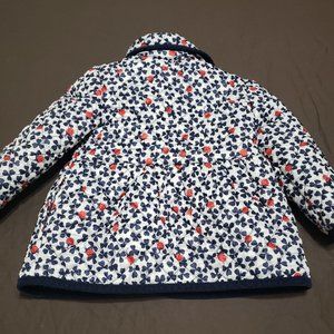 The jacket boasts a crisp white base, providing a clean and versatile canvas. Adorned with playful ladybug and clover designs in charming blue accents, the jacket is both whimsical and visually appealing. The quilted puffer construction not only adds a touch of sophistication but also ensures excellent insulation, keeping your child warm and comfortable during colder days.