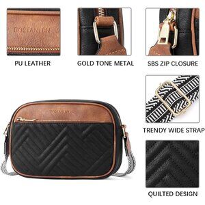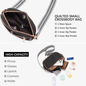 Quilted Vegan Leather Crossbody Black Bag Women Wide Strap and Shoulder Use
