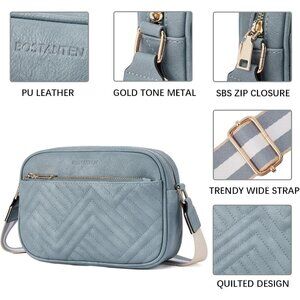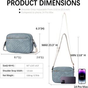 Quilted Vegan Leather Crossbody O-Blue Bag Women Wide Strap and Shoulder Use