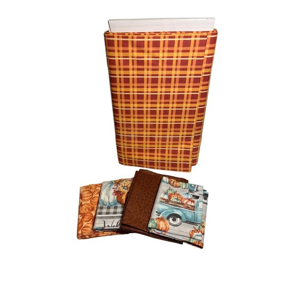 Quilting Fabric Bundle 4 Fat Quarters Truck Pumpkin 3 Yds Plaid Orange Autumn