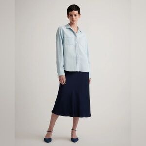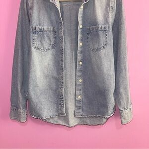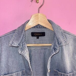 Quince Denim Shirt Women’s Size Small Distressed Blue Long Sleeve Button Down