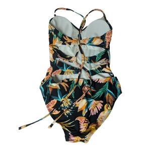 Quintsoul* Birds of Paradise One Piece lace up back NWOT Size Small*