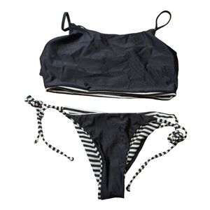 Quintsoul Reversible Striped Ribbed Cami & Low Rise Side Tie Bottoms Bikini NWOT
