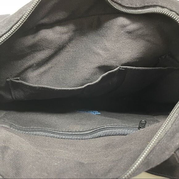 Quote by Rainier Maria Rilke. 100% cotton canvas, zipper closure. 3 inside pockets - 1 zippered and 2 open pockets for cell phone and additional miscellaneous items. Inside bottom is reinforced with a removable canvas covered cardboard to help maintain structure and support. Great for every day use, book bag, for the beach or a gift. Very good used condition.
