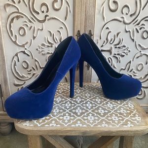 🆕️Qupid Faux Velvet Blue Platform Heels