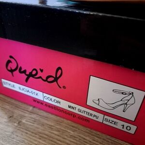 Qupid | Mint glitter ~ Pastel mint glitter open toe high heel shoe
