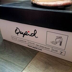 Qupid | Pink crush velvet ~ open toed chunky glitter heel with straps