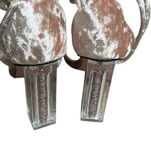 Qupid pink crushed velvet 4” square glitter heels. Clear ,sheer at toes,EC ,box