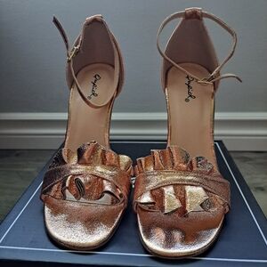 Qupid| rose gold distressed met pu~ open toed high heel with ankle strap
