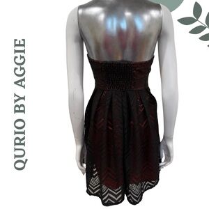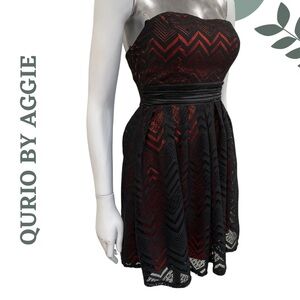 Qurio by Aggie Strapless Chevron Dress Black w/ Red Underlay – Size Medium