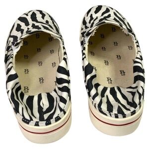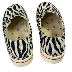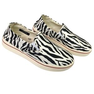 Women’s size 10. Men’s size 8. Unisex. Zebra print cotton canvas upper. Fabric made in Japan. These shoes can also be worn beach style with the back down. In excellent pre owned condition showing only very minor signs of wear. All of the footwear I list are carefully and thoroughly cleaned inside and out. Leathers are conditioned when necessary. From a smoke free, pet free home. Photos are important so please check all for condition, detail and measurements. SOLD OUT Online.