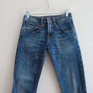 R13 Boy Skinny Jeans in Emerson Blue Wash Raw Hem - Size 24