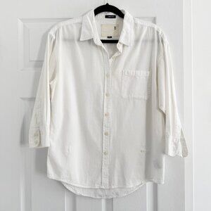 R13 Crossover Front White Oxford Shirt, size Small. Fits true to size - but could work for an XS/S wanting it slouchier too.