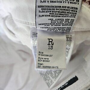 R13 Mid Rise Boy Skinny Jeans - White SZ 26
