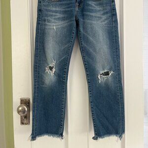 R13 Boy Straight Jeans distressed and rips in knees. In great condition. Retails for 970 Canadian. Slim Straight and cropped. Runs slightly small, size 25.