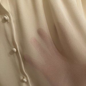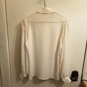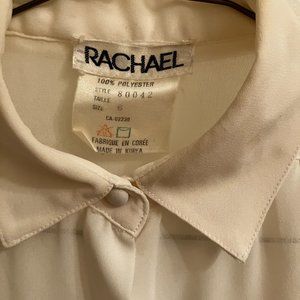 vintage Rachael blouse, size 6, cream colour, polyester, like new, sheer, flowy, cloth covered buttons