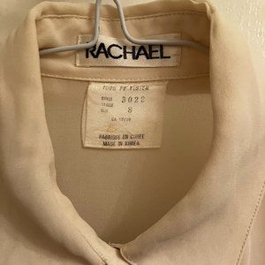 classic RACHAEL blouse, size 8, cream colour, like new, polyester, pleated front, hidden buttons, it says 8 but it is a small 8