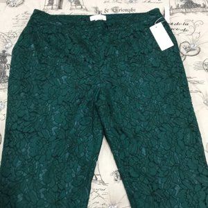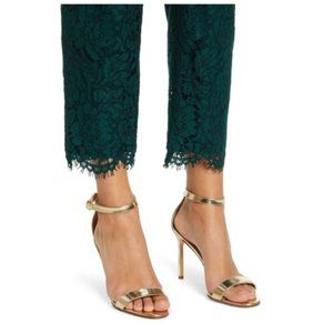 Satin lining shines from behind a veil of lace on these formal slim-leg trousers with eyelash scallop hems.