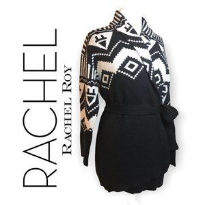 RACHEL ROY BLACK WHITE WOOL Belted CARDIGAN Sweater