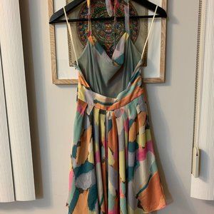 Multi-colored pastel spring dress from RACHEL Rachel Roy. Halter top and backless. Short flowing skirt. Perfect for spring/summer. Only worn once.