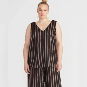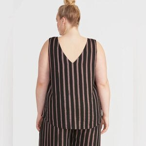 A dressed up Set! A classic tank silhouette gets a dressy feel with a Rose Gold Lurex stripe so it feels fresh & glowy! Paired with the matching Naida pant for a polished work look with a blazer or dress up denim!