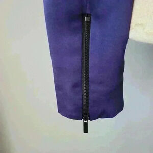 Satin style colorblock blazer with purple sleeves and black body. Zippered closure and wrists. Excellent condition. size 0