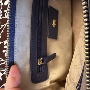 Gorgeous Radley London crossbody in smooth fine leather, brand new, purchased for an event but never used. Stunning blue color. Adjustable crossbody strap, zip top opening, inside zip pocket and slip pocket, outside slip pocket. Comes with a Radley London dustbag, hangtag/keychain, and authenticity card. Dimensions are 9.8 L x 2.8 W x 6.3 H.