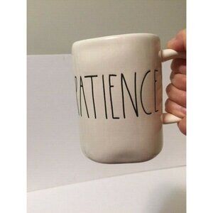This Rae Dunn mug "Patience" in LL style. It is an ivory cream base colour with black lettering. Rae Dunn Artisan Collection by Magenta. It is in excellent condition. It was never used and has minimal shelf wear on the bottom.