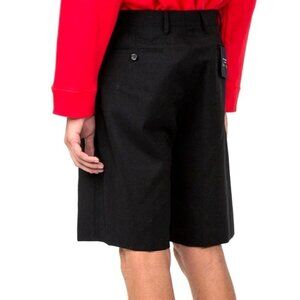 Black virgin wool Bermuda shorts from Raf Simons featuring a back 'Substance' print.