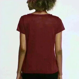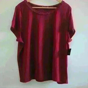 • Style: Decorative fringe trim around neckline, Contoured slimmer fit, soft and smooth fabrication, material is a bit sheer, short sleeved